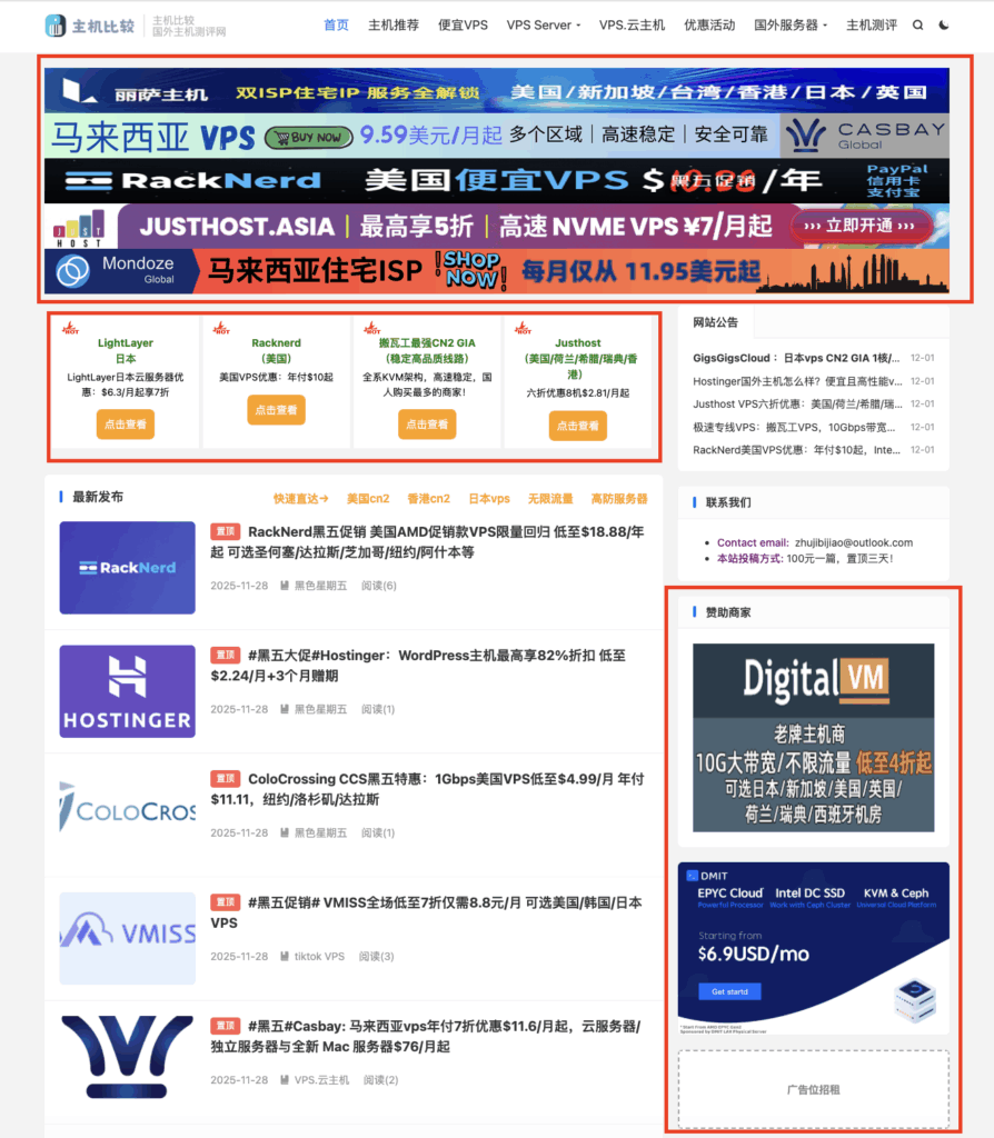 优势:全站文章页面显示,PC端、手机端同步显示,最新发布上方和底部上方的各只接受一个赞助商。